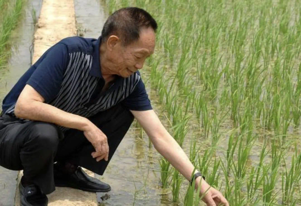 (2007年5月10日,袁隆平在实验田观察水稻长势。新华社记者 赵众志 摄)
