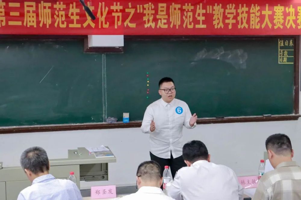为强化师范生教学核心素养,扎实推进我院师范生教学能力培养,搭建师生教学技能交流互鉴平台,5月24日,我院于仓山校区田楼三教室举办小学数学组教学技能大赛决赛。福州市鼓楼区教师进修学校党支部书记叶育新老师、科研室主任郑圣发老师,福州市中山小学教导主任陈芬老师、福州市鼓楼第二中心小学林主敏老师、福建师范大学教师教育学院丁革民老师和念烨老师担任本次比赛评委。