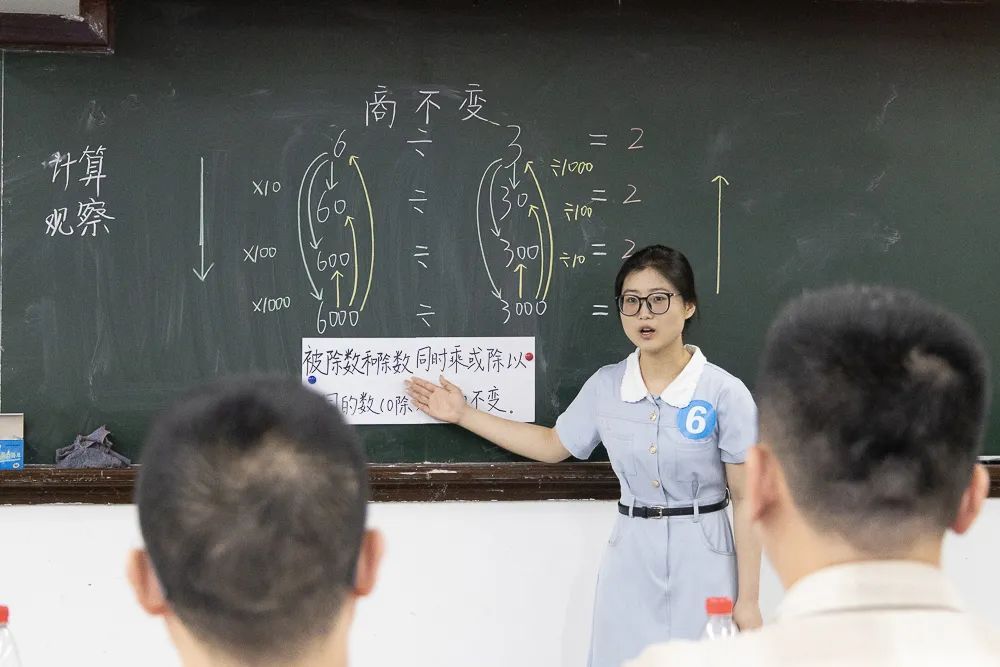 本次小学数学组共三个课题,即:《三位数乘两位数》、《商不变规律》、《平行与垂直》。选手们逻辑严谨、思维清晰、语言流畅,以扎实的专业基本功与别出机杼的教学设计,为评委与观众呈上一场精彩纷呈的教学艺术盛宴。