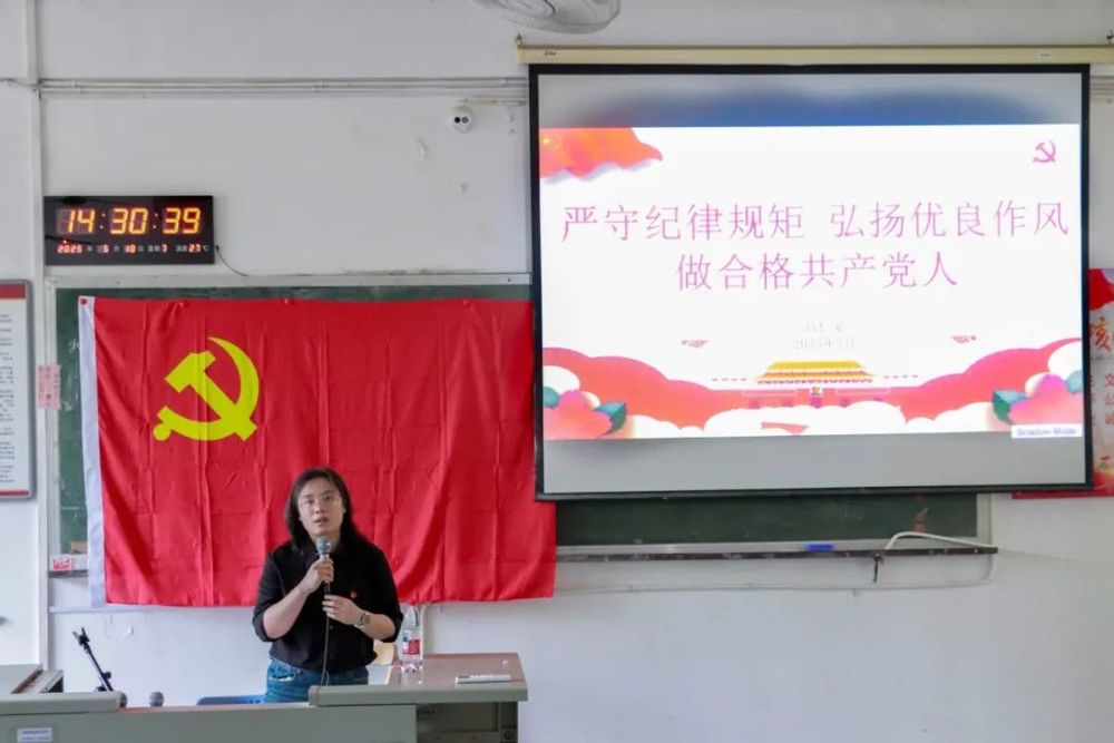光电与信息工程学院高仁爱老师为入党积极分子讲授专题党课,围绕“党的纪律与作风建设”展开深入教学。高仁爱老师以原始人类集体捕猎为喻,生动阐释纪律在集体中的必要性,强调党的纪律是党员行为的“硬约束”。她结合党章党规,从政治、组织、廉洁等六大纪律切入,以典型案例解析纪律内涵与特征,指出 “党的纪律是党的事业胜利的根本保证”。随后,她从思想、工作、学习等五个维度解读作风建设,要求学员做到立场坚定、勤学修德,在各领域发挥先锋模范作用。