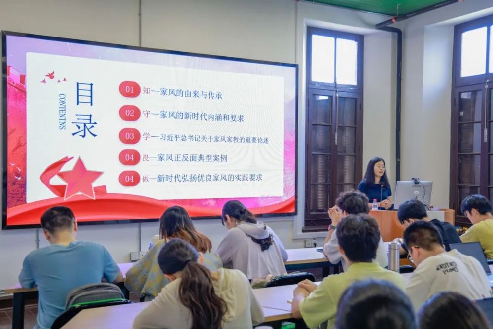 5月21日下午,我院庄幼红老师为发展对象、预备党员及正式党员讲授“廉洁家风涵养清风正气”主题党课。庄老师主要围绕知、守、学、畏、做五个方面展开讲解。首先,介绍了家风的由来与传承,并强调“重视家风建设是历来是我们党的优良传统和作风”。接着,庄老师围绕“家风沐党风、家风清政风、家风淳社风”呈现了家风的新时代内涵和要求。而后,庄老师带领学员们学习领会习近平总书记关于家风家教的重要论述,结合家风正反面的典型案例,深入浅出地剖析了家风建设的重要性及其对党员廉洁自律的深远影响,强调了家风建设在党员个人品德修养和党风廉政建设中的重要性最后向学员们提出新时代弘扬优良家风的实践要求,号召学员们要将廉洁家风内化于心、外化于行,担当家风建设的“示范者”,担当传统家风的“传承者”,担当核心价值的“培育者”。