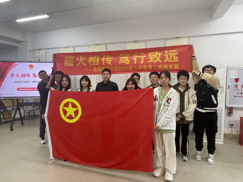 活动伊始,团支书宋昱岑主持开场,阐述本次活动以“薪火相传”寓意教育精神的接续,以“笃行致远”勉励支部成员脚踏实地、砥砺前行。辅导员廖伊诺在致辞中强调,作为师范生既要坚定“为党育人、为国育才”的初心使命,也要主动向一线优秀教师学习,将理论知识与教育实践紧密结合,为未来走上讲台打下扎实基础。