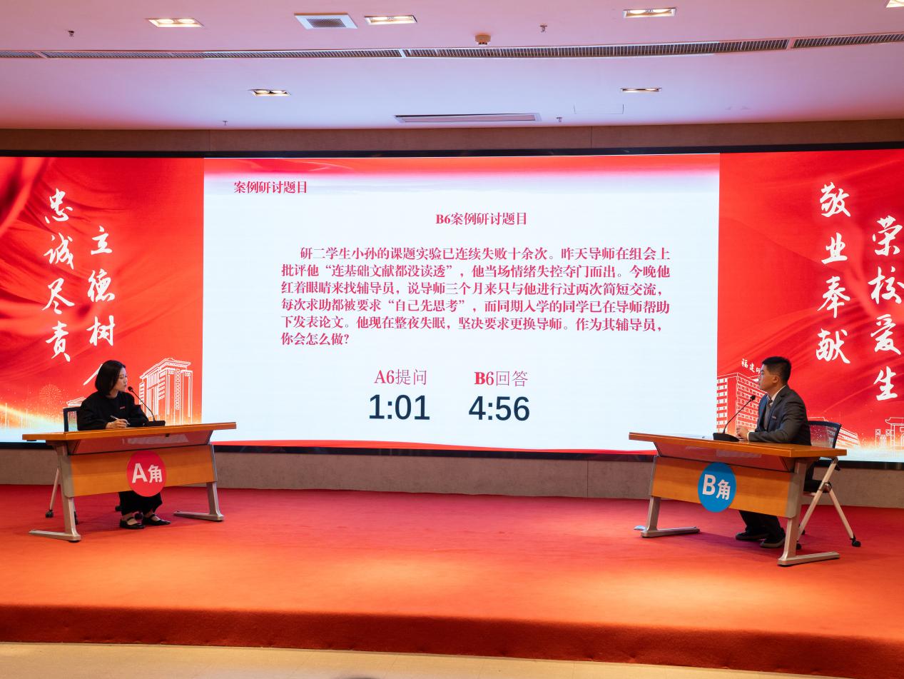 辅导员素质能力大赛是学校推进辅导员队伍专业化、职业化发展的重要平台。本届大赛紧密围绕辅导员工作实际,通过初赛的基础知识测试与学情研判、复赛的案例研讨,直至决赛的谈心谈话模拟,层层递进,综合考查参赛者在思想引导、学生管理、心理辅导及应急处理等方面的能力与实效。比赛中,我院两位老师凭借扎实的功底与稳定的发挥,充分展示了学院辅导员队伍的专业素养与育人风采。