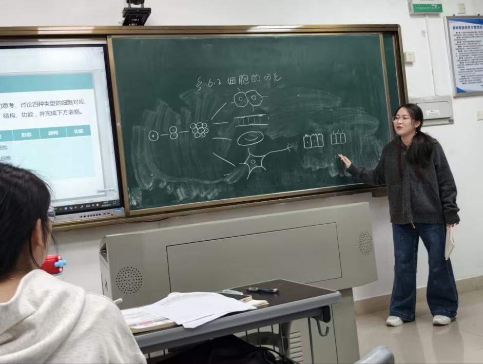 从细胞的微观结构到生态的宏观系统,准教师们用生动的图示、清晰的讲解,带领学生探索生命的奥秘。黑板上的细胞示意图、课堂上的互动提问,让学生在观察与思考中理解生命的规律,在探索中建立对自然的敬畏与热爱。